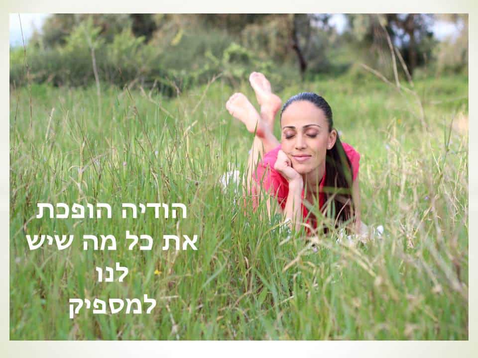 הודיה היא התרופה הטובה ביותר. היא מרפאת את הנפש, הראש והגוף ומושכת דברים נוספים שעלינו להודות עליהם